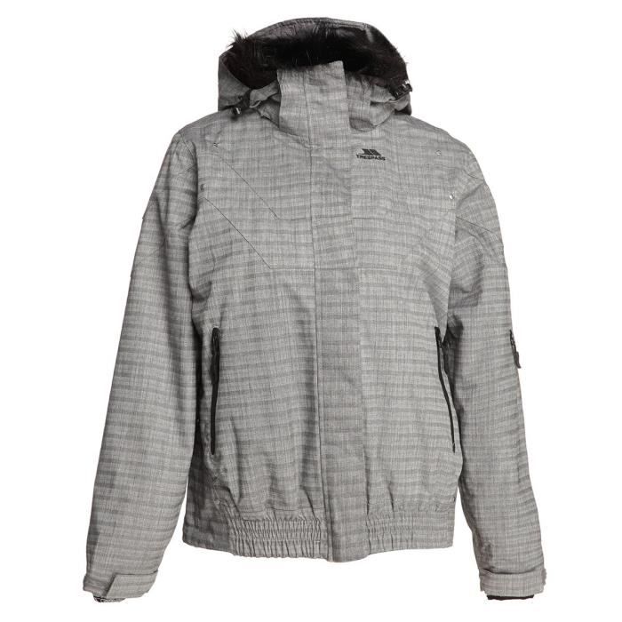 Blouson de ski 100% polyester, gris, fermeture zippée, 2000-5000 waterproof, 2 poches zippées, capuche avec dispositifs de serrage. Manches longues.