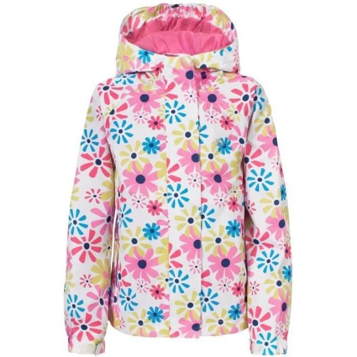 Veste 100% polyester, blanc, fermeture zippée, 2 poches, capuche fixe, motifs fleurs. Manches longues.