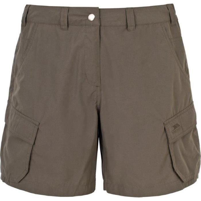 Short 65% polyester et 35% coton, marron, ceinture avec passants, 4 poches.