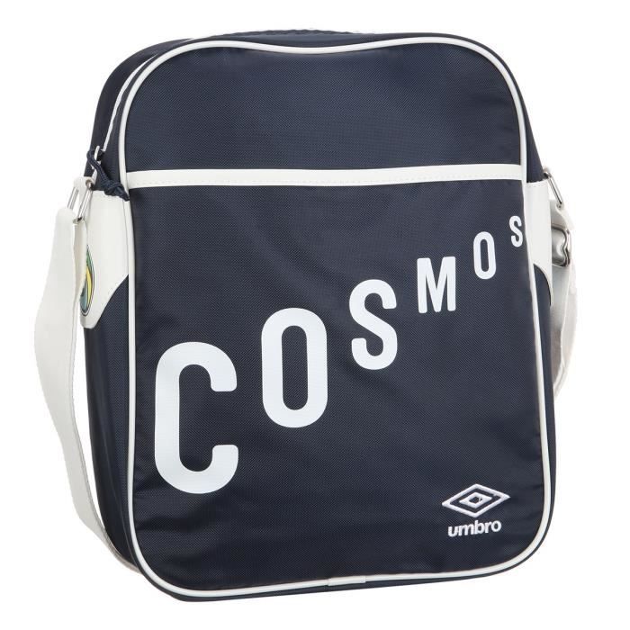 Besace a bandouliere, bleu et blanc, compartiment principal zippé.