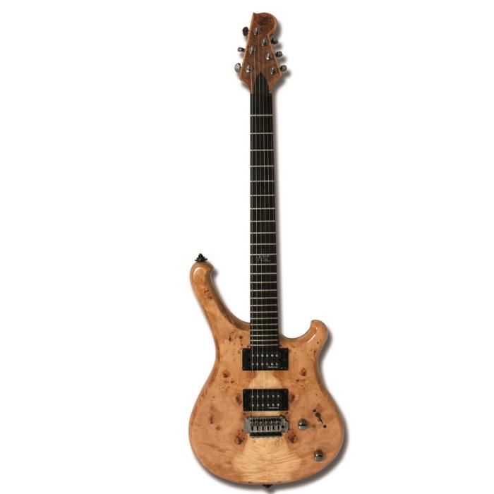 Manche collé en 5 parties en érable de 24 cases. Diapason 25,5". Touche en ébonol. 2 micros doucle bobinage splittable EMG HZ. Sélecteur 5 positions. 1 bouton de volume et 1 bouton de tonalité. Mécanique GROVER/Vibrato lee son Corde d'Addario/straplocks Warmick. Couleur Naturel.
