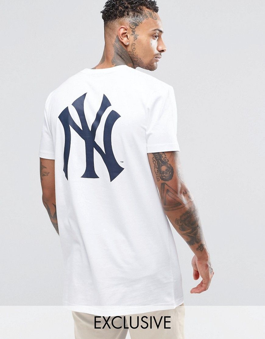 Majestic - - New York Yankees - T-shirt long exclusività ASOS - Blanc