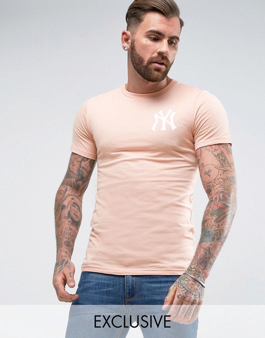 • Majestic - Yankees - T-shirt long moulant exclusivité ASOS - Rose