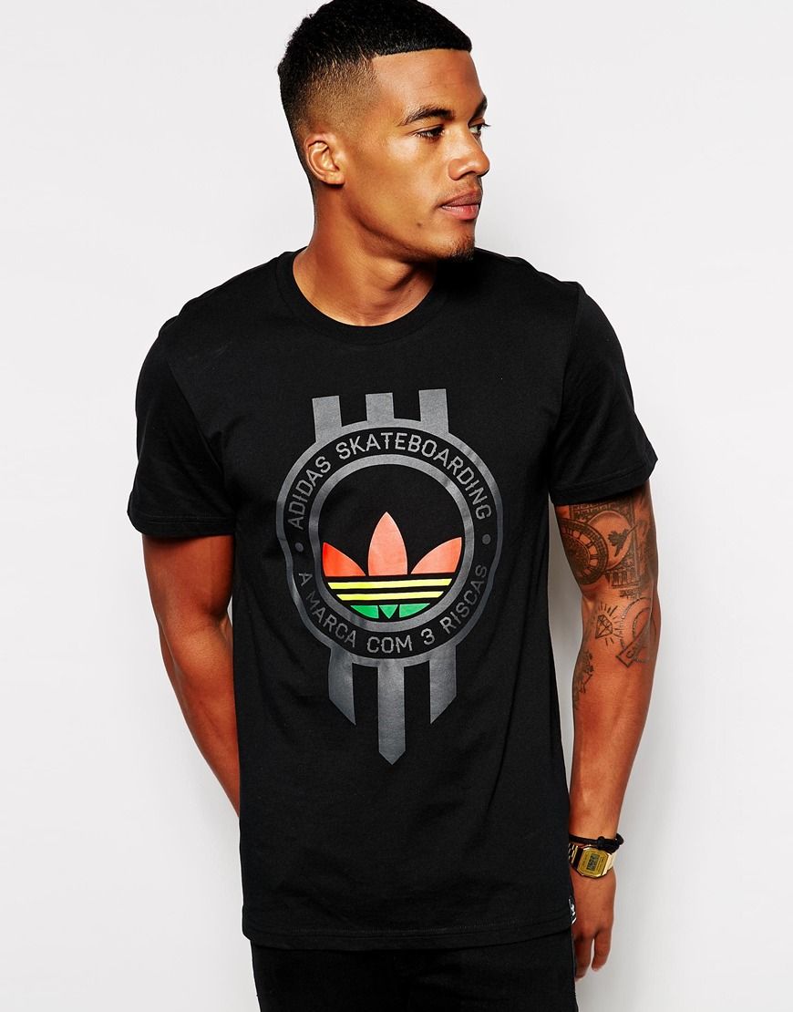 • Adidas Originals - T-shirt griffé à imprimé Rasta - Noir