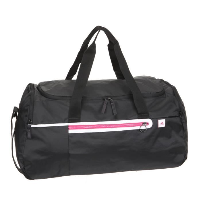 Sac de Sport noir, compartiment principal zippé, 2 poches latérales, 1 poche zippée, poignées de transport, bandouliere réglable.