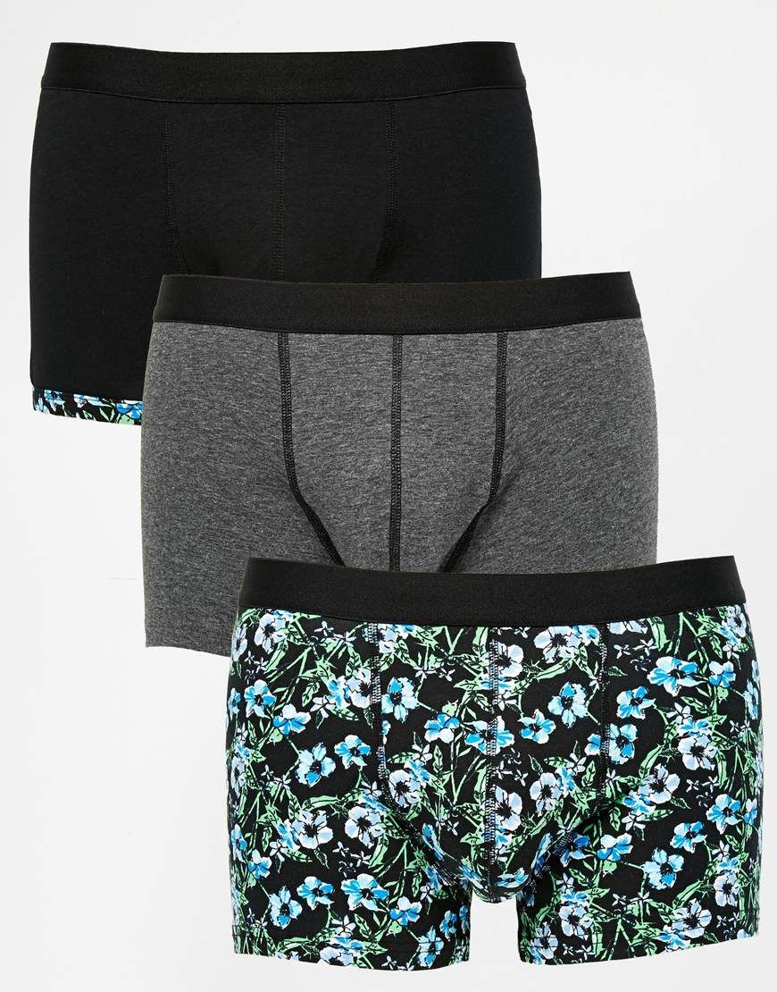 • ASOS 3 Pack Trunks With Floral Print SAVE 20% - Noir