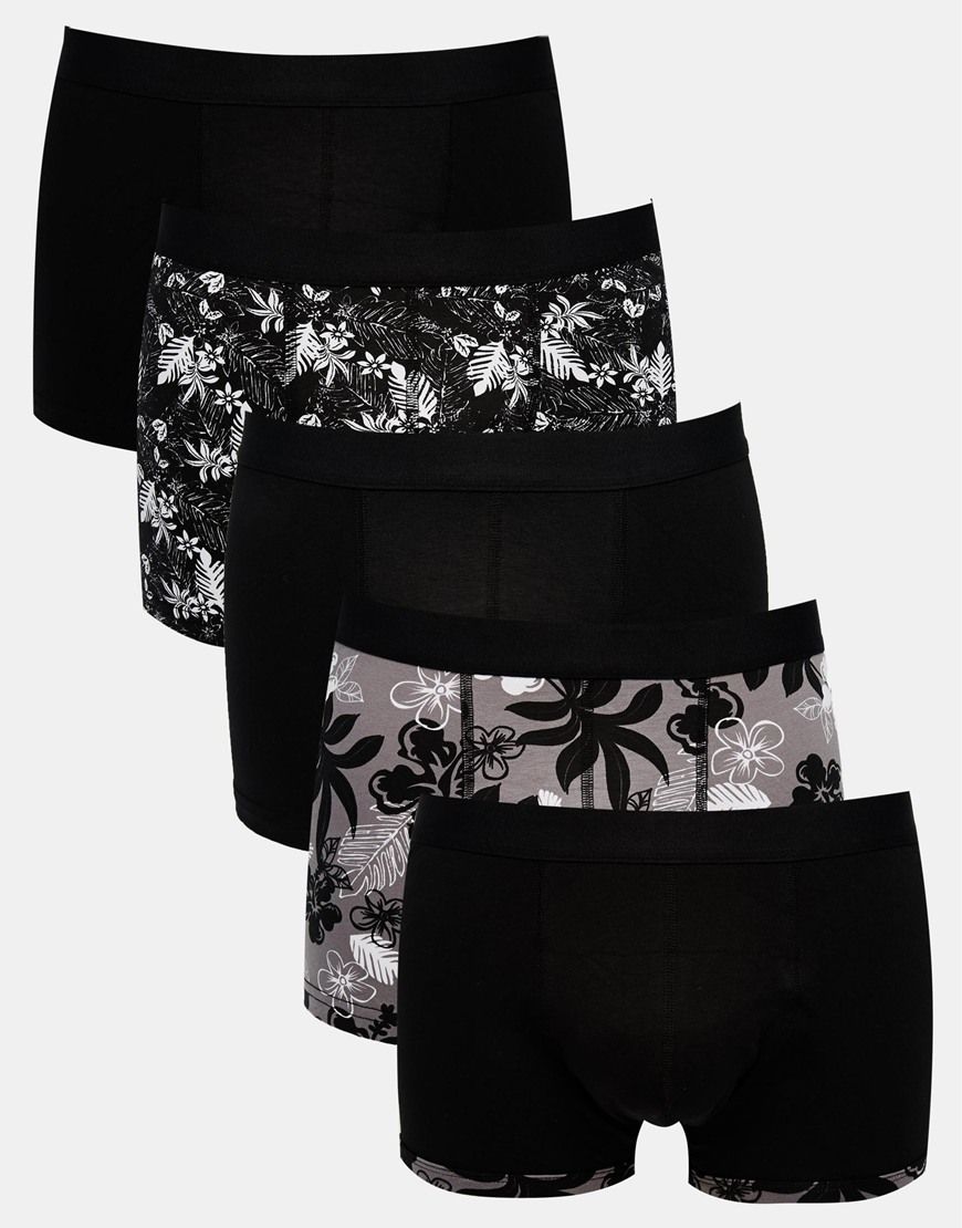 • ASOS 5 Pack Trunks With Monochrome Floral Print SAVE 28% - Noir
