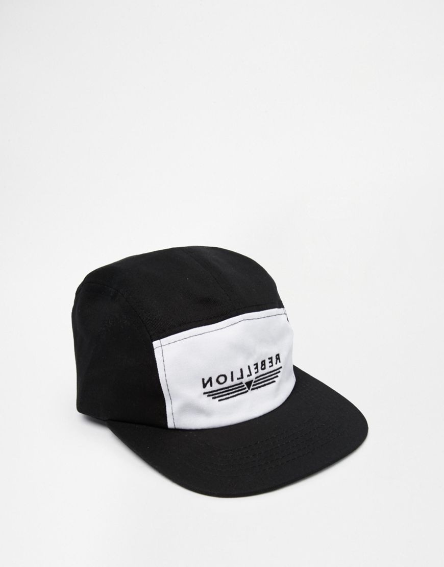 ASOS 5 Panel Cap In Black With Rebellion Print - Noir