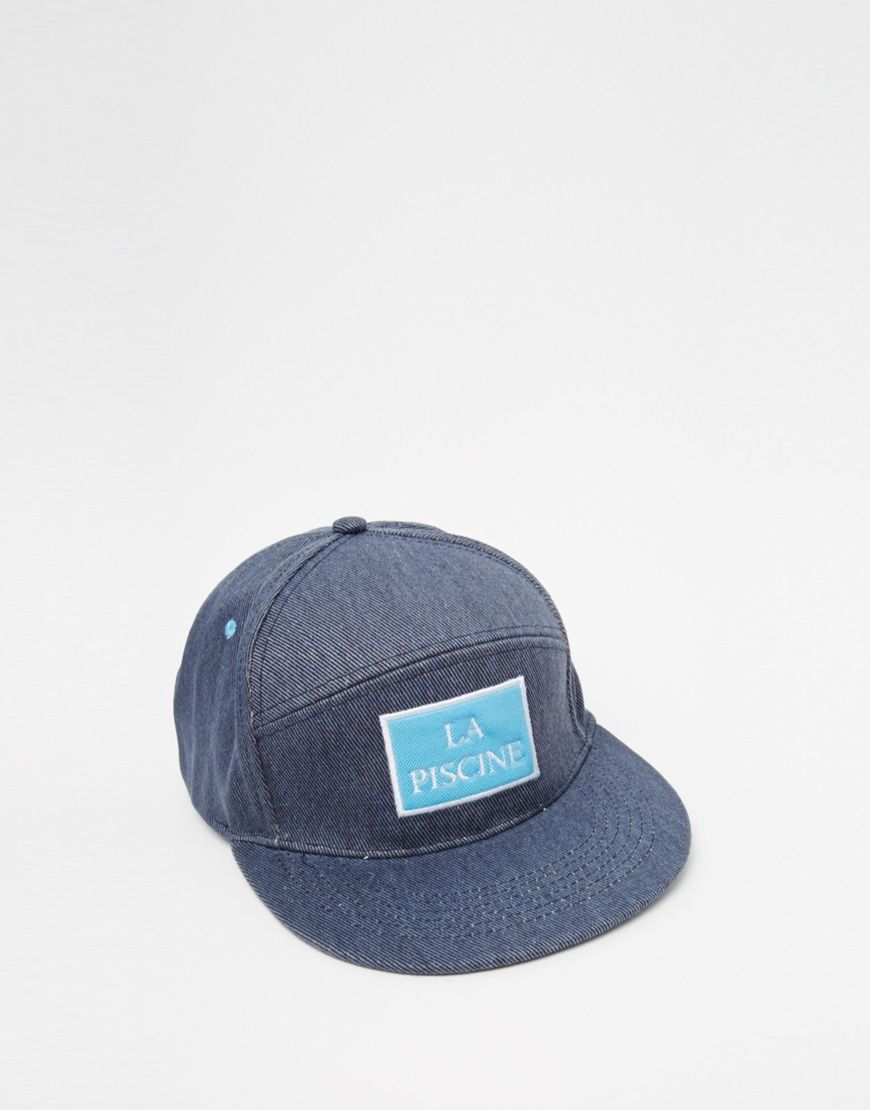 • ASOS 6 Panel Cap In Navy With La Piscine Print - Bleu marine