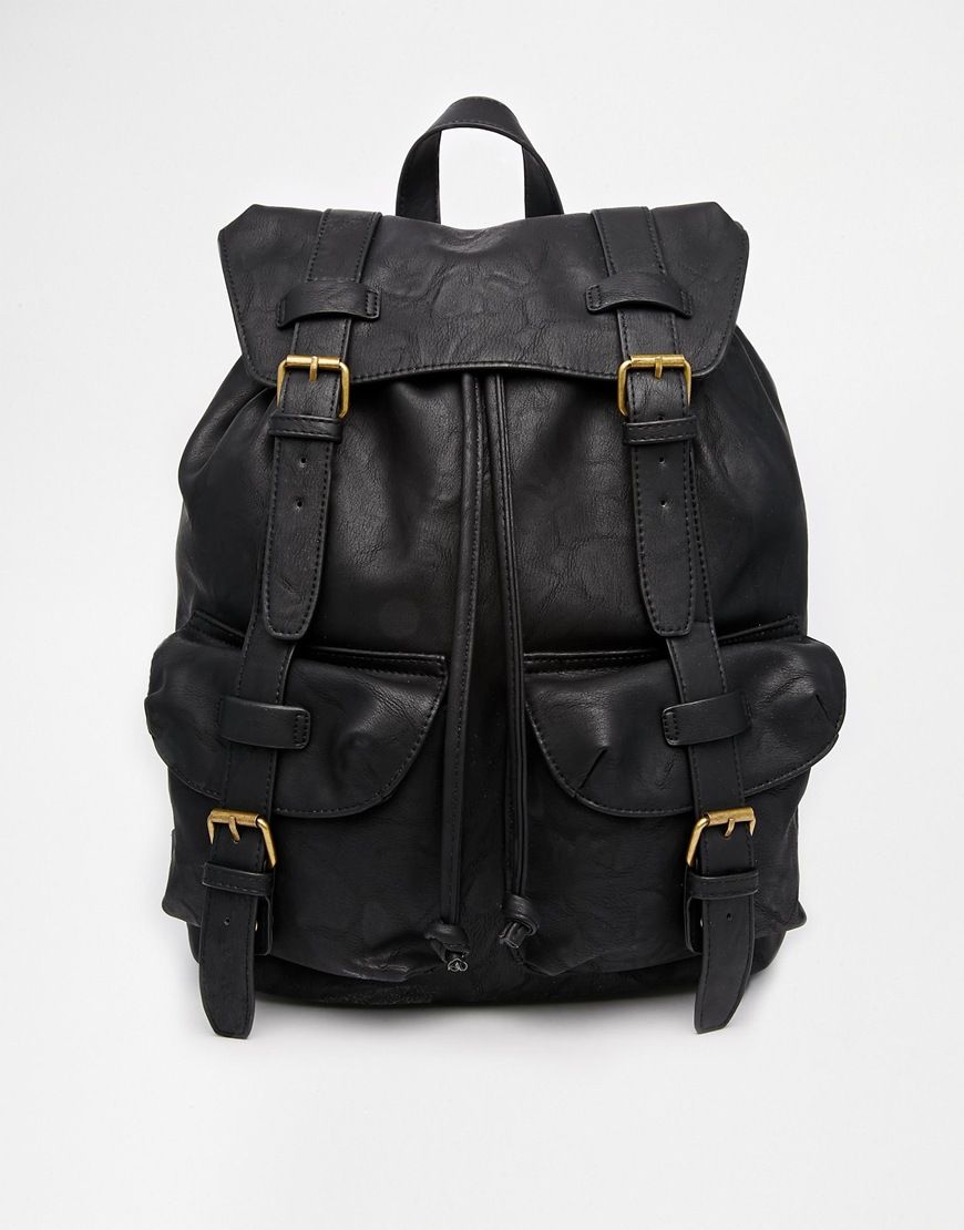 ASOS Backpack In Black Faux Leather With Straps - Noir