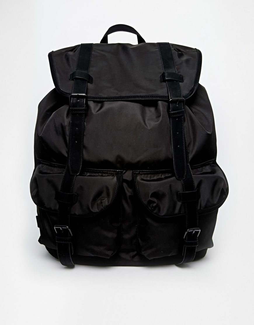 ASOS Backpack In Black Nylon With Contrast Straps - Noir
