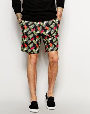 ASOS - Bermuda slim - Imprimé hawaïen - Noir