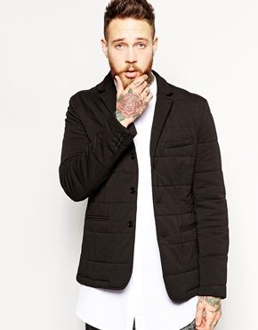 Achetez ASOS - Blazer cintré en jersey matelassé, Asos pour homme sur Pickture, dans les tendances ASOS, Blazer, jersey, Noir