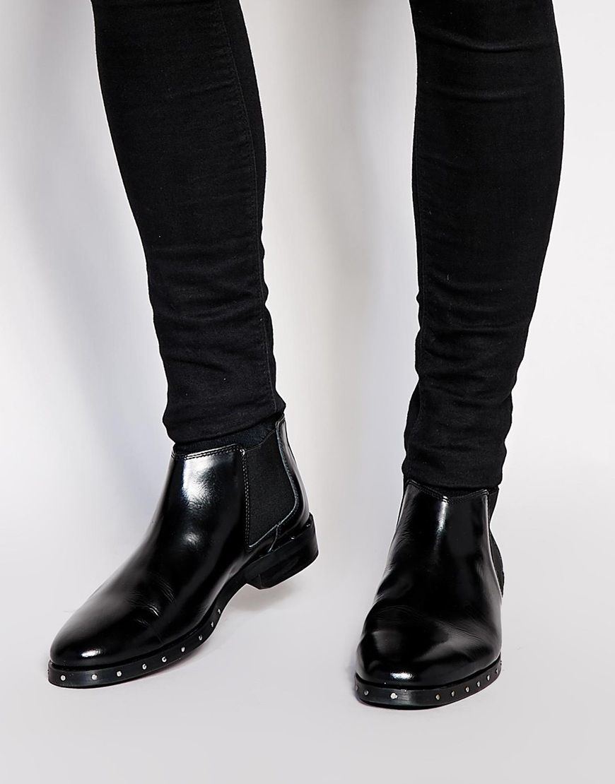 ASOS - Bottines chelsea en cuir avec semelle cloutée - Noir