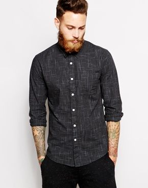 Achetez ASOS - Chemise à manches longues effet flammé, chemise Asos pour homme sur Pickture, dans les tendances ASOS, Chemise, Gris