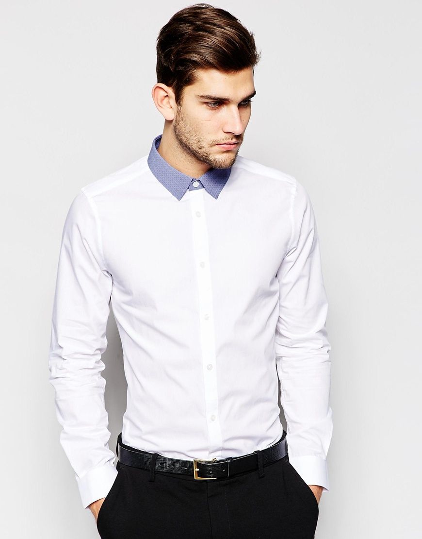 • ASOS - Chemise à manches longues et col contrastant - Blanc