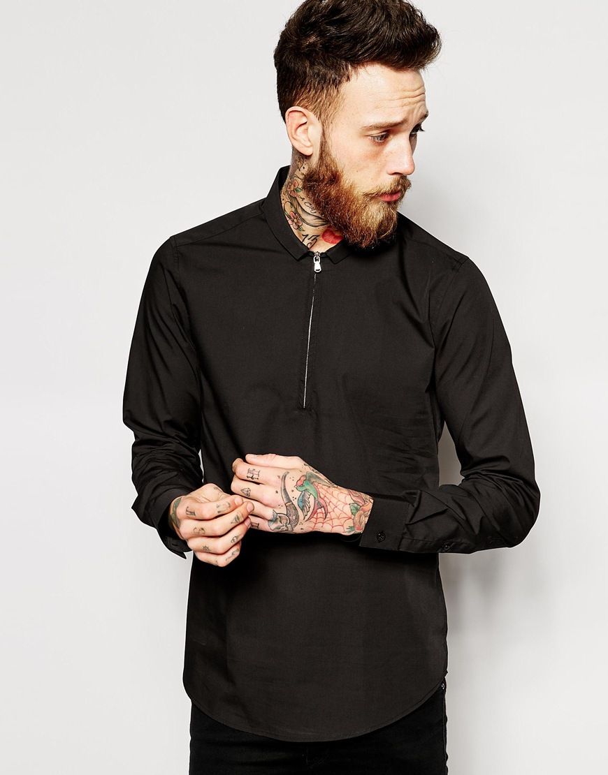 Achetez ASOS - Chemise à mini col incurvé et fermeture, chemise Asos pour homme sur Pickture, dans les tendances ASOS, Chemise, mini, Noir