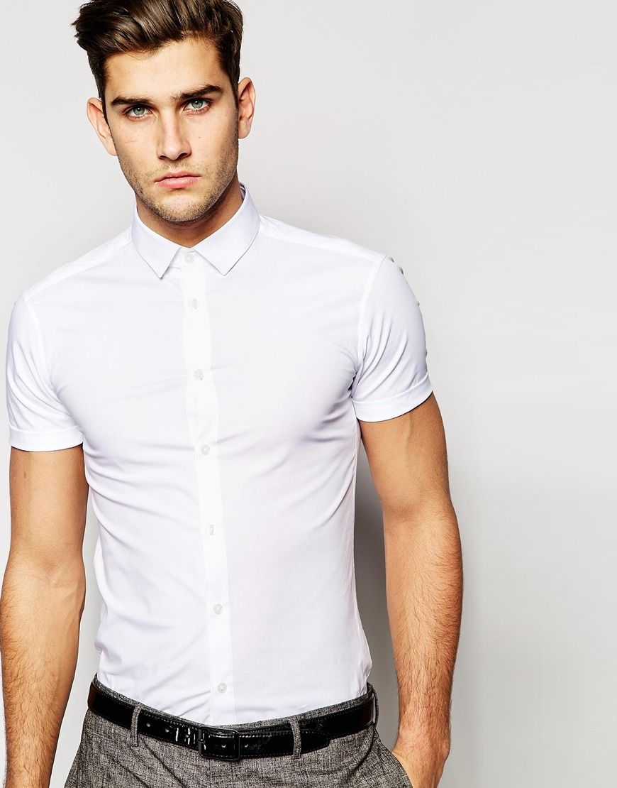 ASOS - Chemise cintrée à manches courtes - Blanc - Blanc