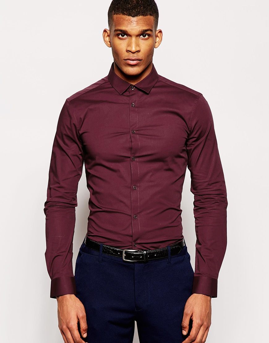 ASOS - Chemise cintrée à manches longues - Bordeaux - Bordeaux