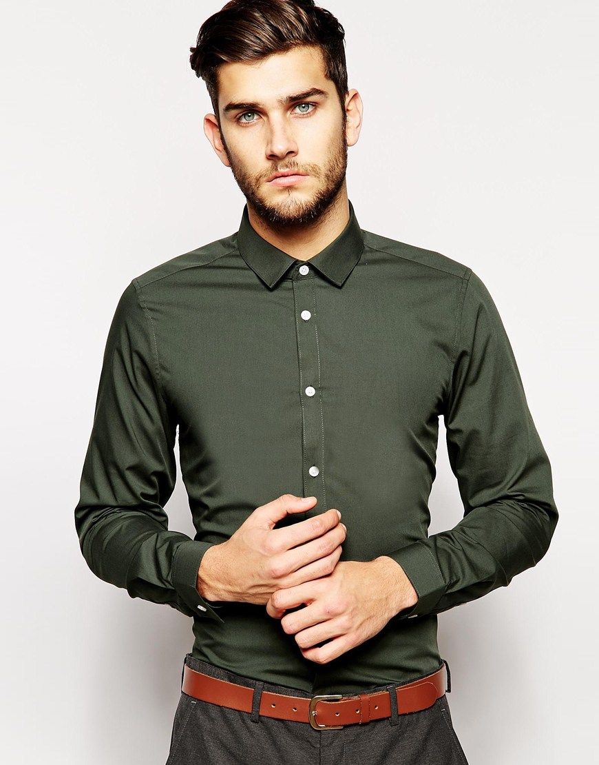 Achetez ASOS - Chemise élégante à manches longues, chemise Asos pour homme sur Pickture, dans les tendances ASOS, Chemise, Kaki