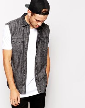 Achetez ASOS - Chemise en jean sans manches, jean chemise Asos pour homme sur Pickture, dans les tendances ASOS, Chemise, jean, Gris