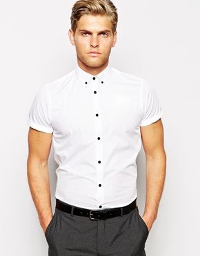 ASOS - Chemise habillée à manches courtes avec col boutonné et boutons contrastants - Blanc