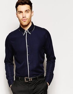 Achetez ASOS - Chemise habillée à manches longues et, chemise Asos pour homme sur Pickture, dans les tendances ASOS, Chemise, Bleu, marine