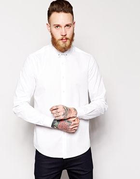 • ASOS - Chemise habillée manches longues avec pince à cravate - Blanc