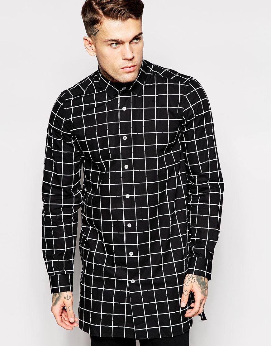 Achetez ASOS - Chemise longue habillée à gros carreaux, chemise Asos pour homme sur Pickture, dans les tendances ASOS, Chemise, carreaux, Blanc