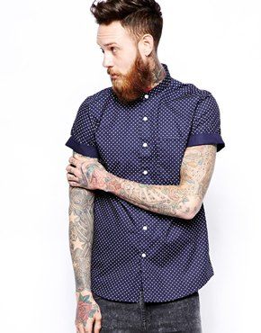 Achetez ASOS - Chemise manches courtes à pois et col, chemise Asos pour homme sur Pickture, dans les tendances ASOS, Chemise, pois, Bleu, marine