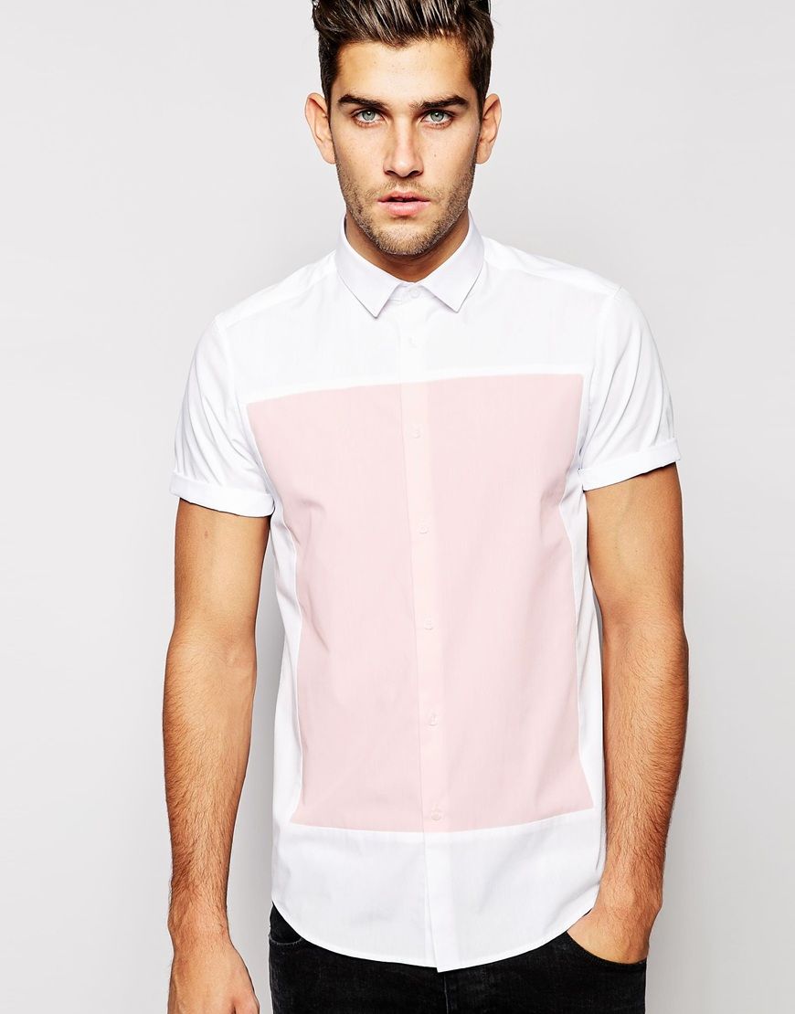 ASOS - Chemise manches courtes avec carré en coupé-cousu - Blanc