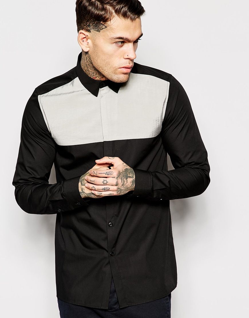 ASOS - Chemise manches longues à empiècement contrastant - Noir