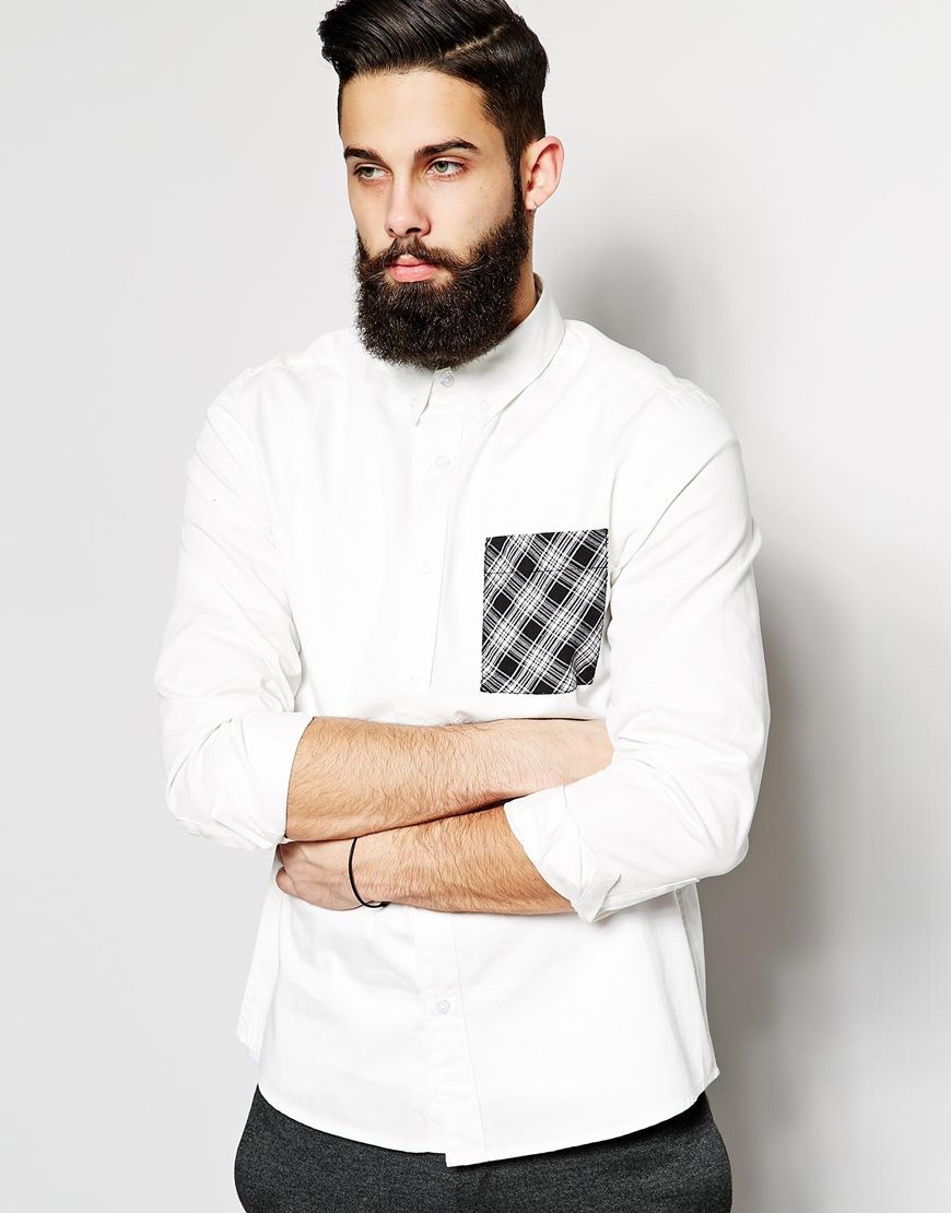 Achetez ASOS - Chemise manches longues avec poche à, chemise Asos pour homme sur Pickture, dans les tendances ASOS, Chemise, carreaux, Blanc