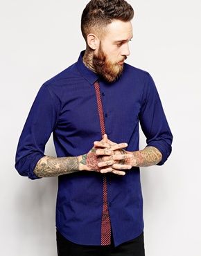 Achetez ASOS - Chemise manches longues élégante avec, chemise Asos pour homme sur Pickture, dans les tendances ASOS, Chemise, pois, Bleu, marine