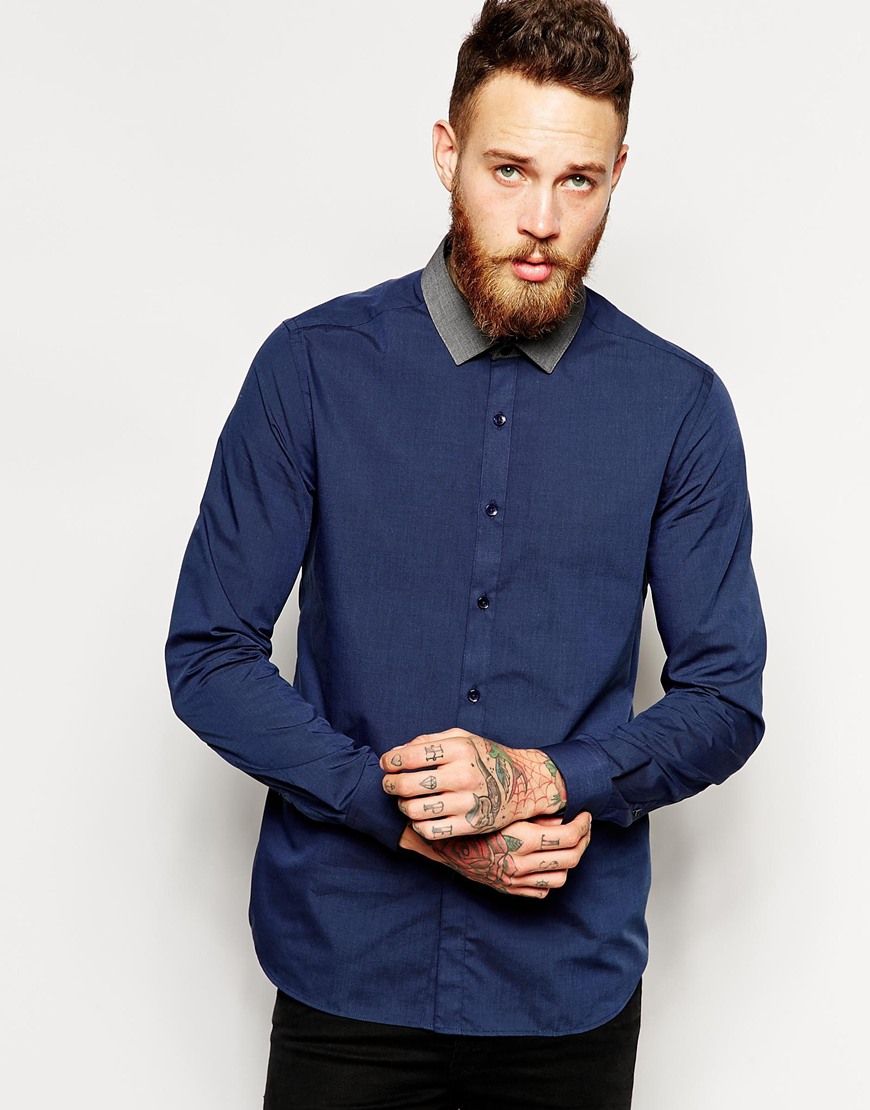 Achetez ASOS - Chemise manches longues élégante avec, chemise Asos pour homme sur Pickture, dans les tendances ASOS, Chemise, Bleu, marine