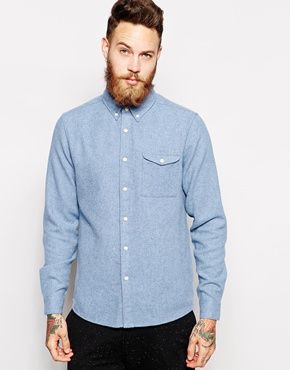 • ASOS - Chemise manches longues en laine mélangée effet chiné - Bleu