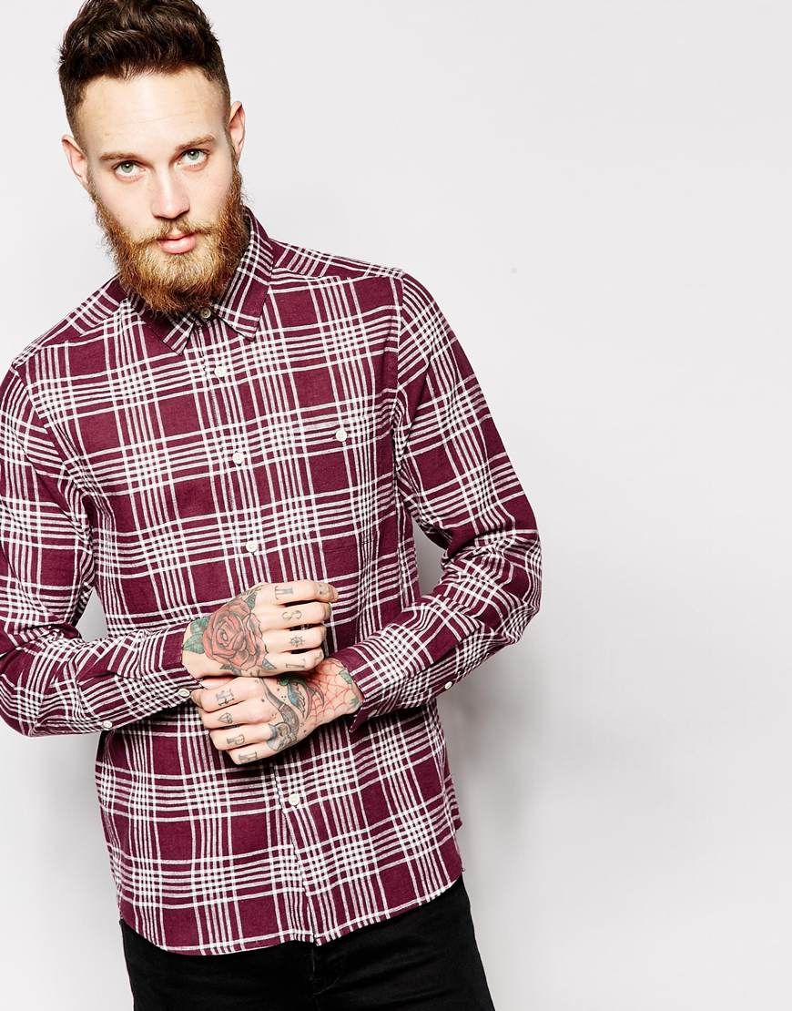 Achetez ASOS - Chemise manches longues en lin mélangé, chemise Asos pour homme sur Pickture, dans les tendances ASOS, Chemise, lin, carreaux, Bordeaux
