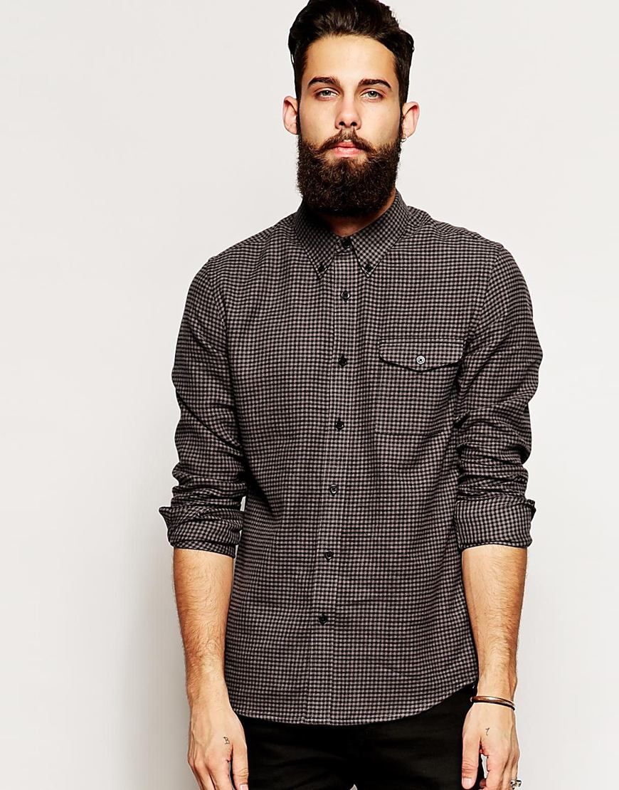 • ASOS - Chemise manches longues en tissu brossé à petits carreaux vichy