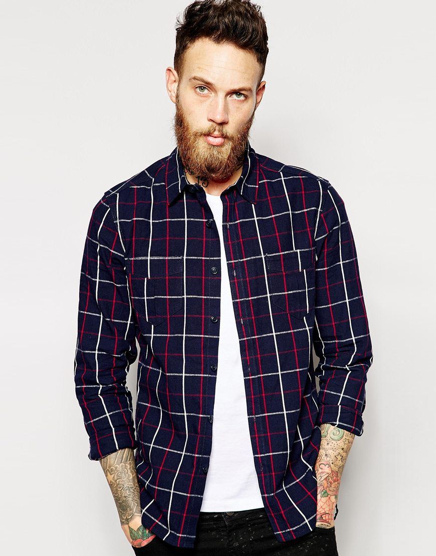 Achetez ASOS - Chemise manches longues habillée à, chemise Asos pour homme sur Pickture, dans les tendances ASOS, Chemise, carreaux, denim, Bleu, marine