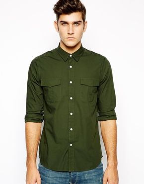 Achetez ASOS - Chemise manches longues style militaire, chemise Asos pour homme sur Pickture, dans les tendances ASOS, Chemise, style, militaire, Kaki