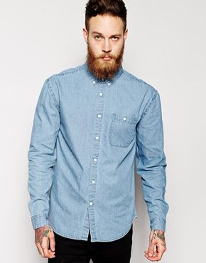 • ASOS - Chemise oversize en jean brut Ă  manches longues - DĂ©lavage moyen