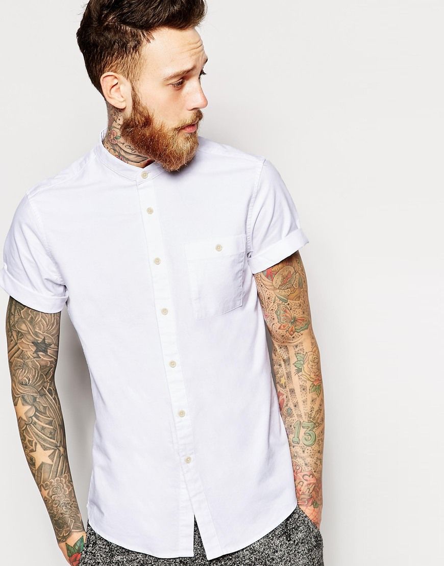 • ASOS - Chemise Oxford à manches courtes et col grand-père - Blanc - Blanc
