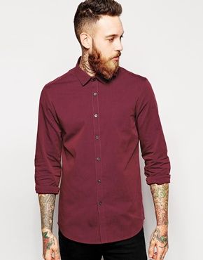 Achetez ASOS - Chemise Oxford habillée à manches longues, chemise Asos pour homme sur Pickture, dans les tendances ASOS, Chemise, Rouge