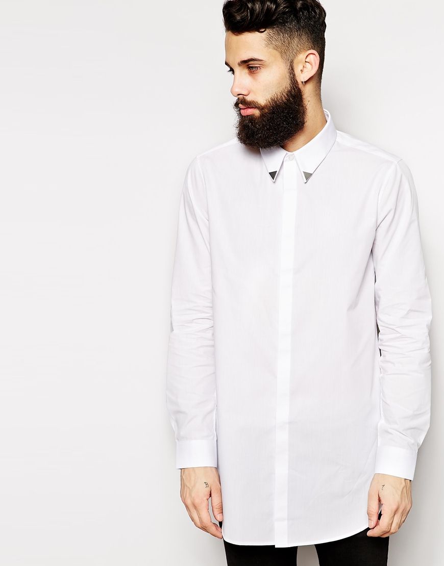 Achetez ASOS - Chemise ultra longue avec pointes de col, chemise Asos pour homme sur Pickture, dans les tendances ASOS, Chemise, Blanc