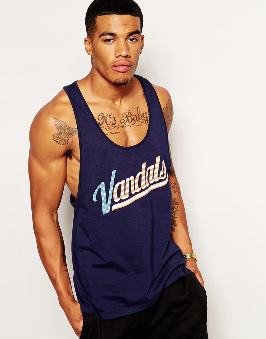 ASOS - Débardeur à dos nageur échancré et imprimé « Vandals » - Bleu marine
