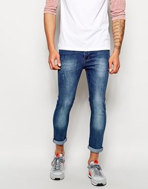 Achetez ASOS - Jean court super skinny avec déchirures, jean Asos pour homme sur Pickture, dans les tendances ASOS, Jean, skinny, Bleu