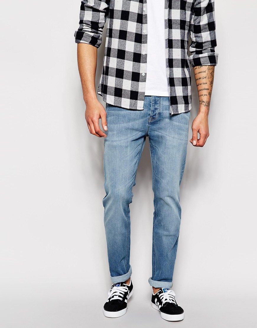 Achetez ASOS - Jean slim stretch à délavage vieilli, jean Asos pour homme sur Pickture, dans les tendances ASOS, Jean, slim, Bleu