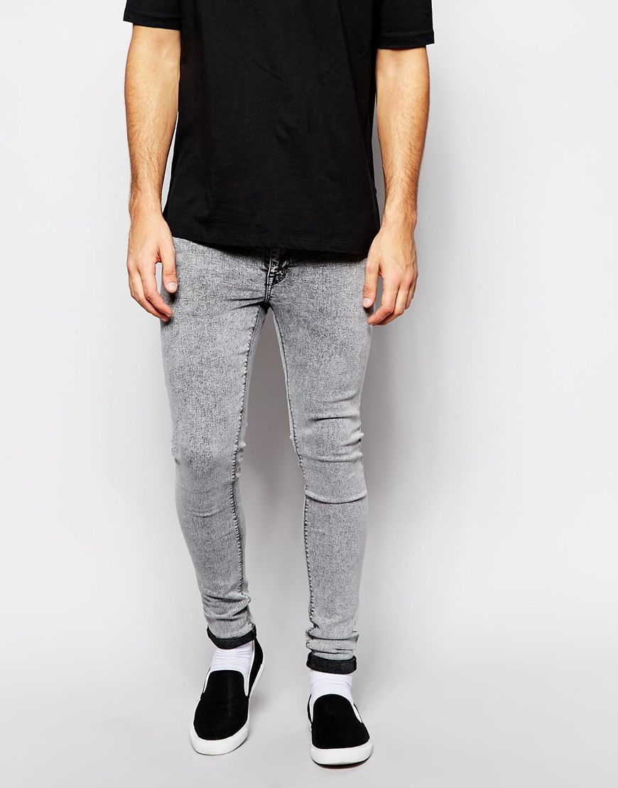 ASOS - Jean super skinny délavé à l'acide - Gris