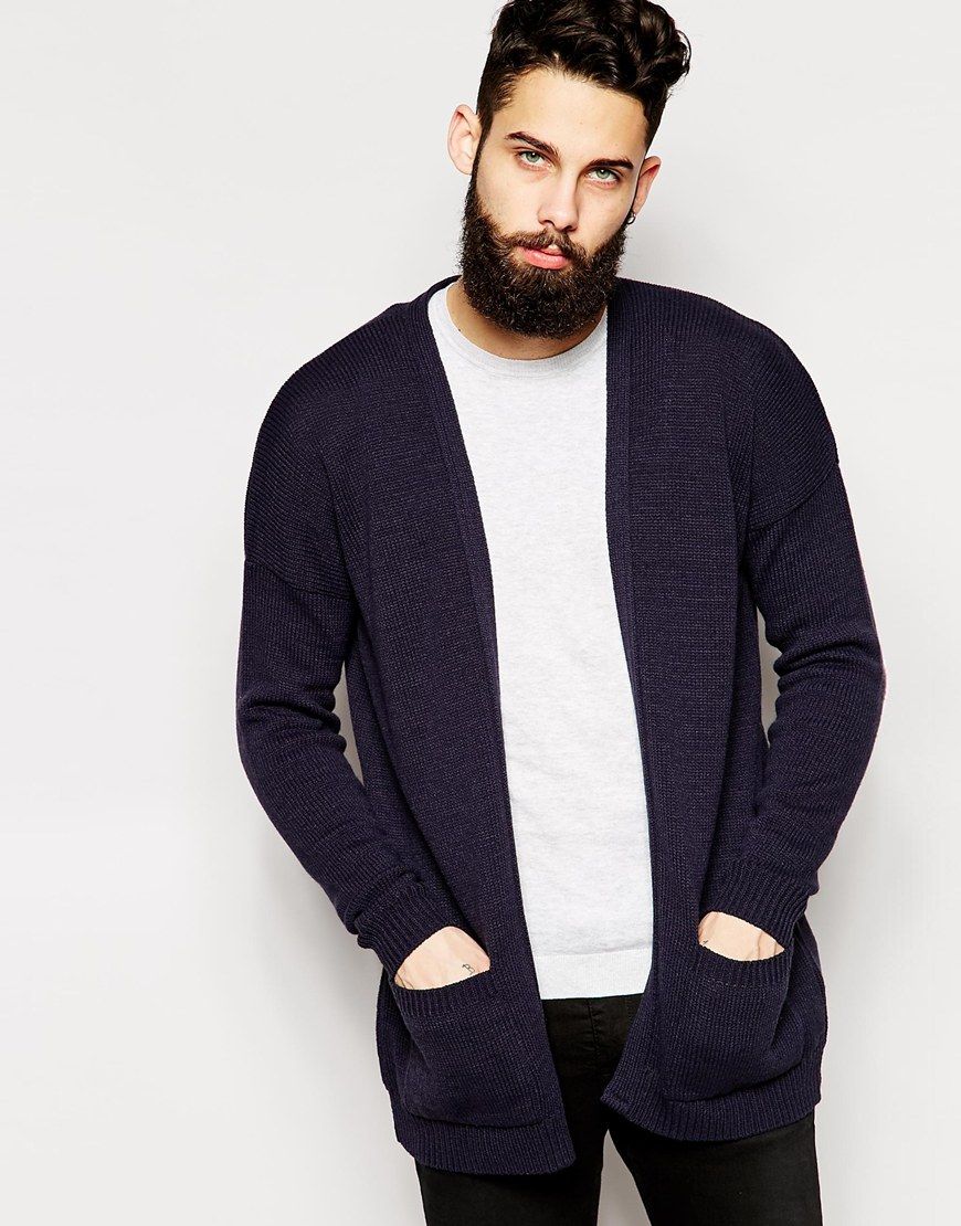 ASOS - Long cardigan ouvert sur le devant - Bleu marine