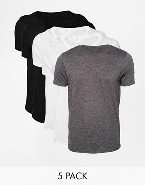 • ASOS - Lot de 5 t-shirts Ă  encolure dĂ©gagĂ©e ÉCONOMIE DE 23%